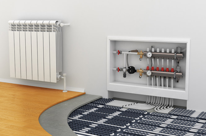 Underfloor heating can sit beneath pretty much any type of floor, including stone, tile, wood, laminates, vinyls and carpet. It keeps floors and rooms warm and offer a space-saving alternative to radiators.